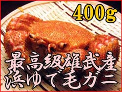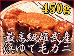 身がぎっしり!カニみそもたっぷり!雄武産毛ガニ 450g前後×1尾【冷凍便】 価格: 3,000円 レビュー評価: 0.0 レビュー数:0 北海道の毛ガニの中でも、最高級の品質を誇る雄武産の毛ガニをお届けします。ふんわりと甘い身は、足の先までびっちり!甲羅の中には、とろけるように濃厚なカニみそがたっぷり!身入りの悪いかに(脱皮直後のカニなど)や、極端に小型のかには一切販売しておりません。新鮮な毛がにを、かにゆで名人が浜ゆでにし、美味しさそのままに急速冷凍しました。自然解凍するだけで、浜ゆでのおいしさをお楽しみいただけます。カニ好きな方へのギフトや、お中元、お歳暮にも最適の高品質の毛ガニです。商品の詳細情報●商品内容雄武(おうむ)産 浜ゆで毛ガニ450g前後×1尾●賞味期限冷蔵1日 冷凍1ヶ月●お召し上がり方自然解凍してお召し上がり Supported by 楽天ウェブサービス |